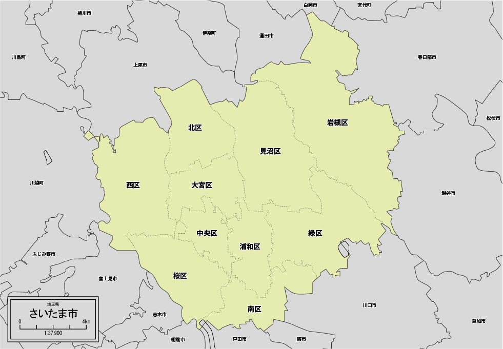 西区、北区、大宮区、見沼区、中央区、桜区、浦和区、南区、緑区、岩槻区